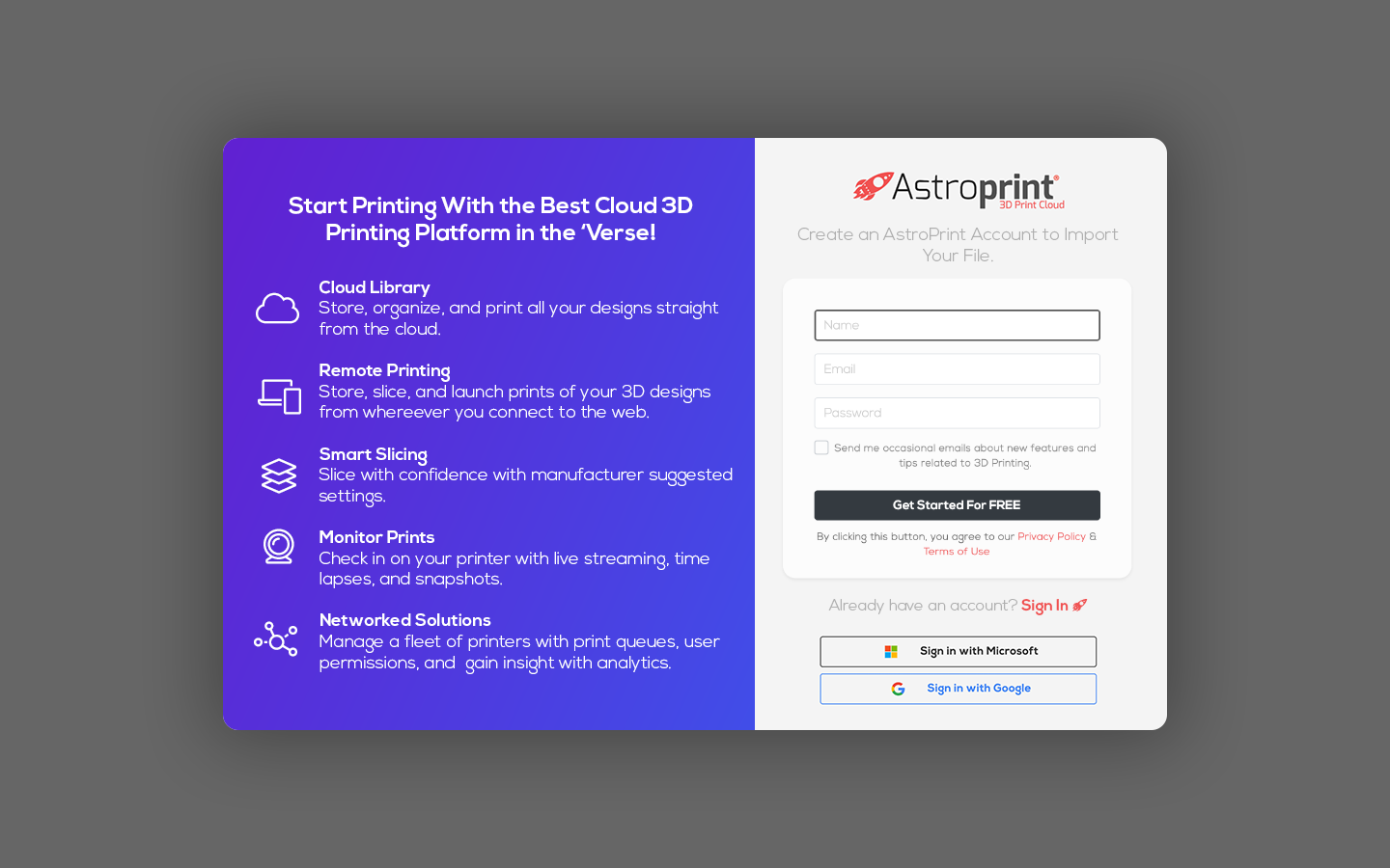AstroPrint Web Portal