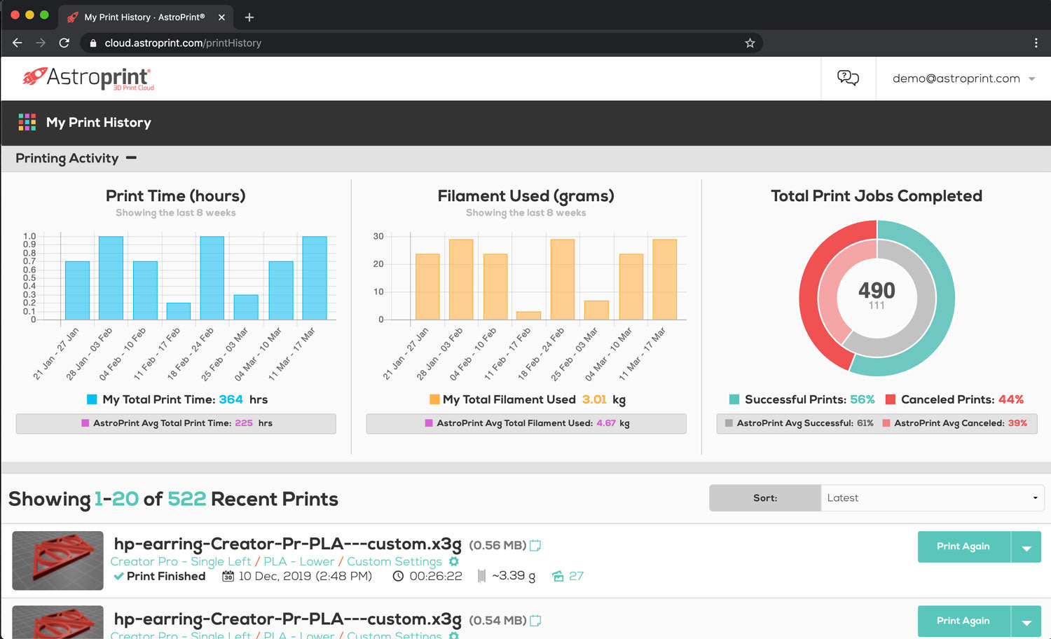 AstroPrint is a Software Platform for 3D Printer Management.